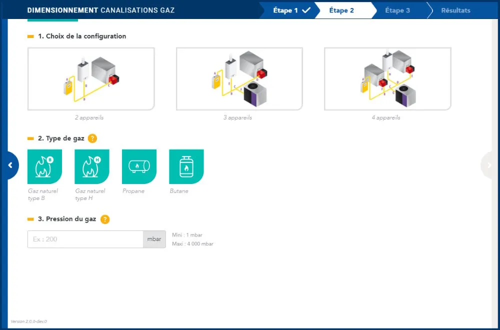 Simulateur : Dimensionnement descanalisations gaz