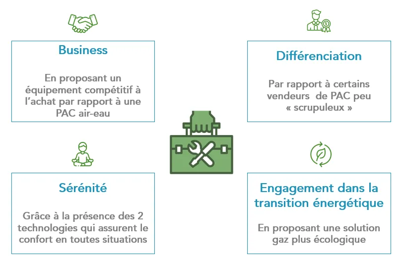 Pour vous, installateurs, la PAC hybride présente de nombreux intérêts.