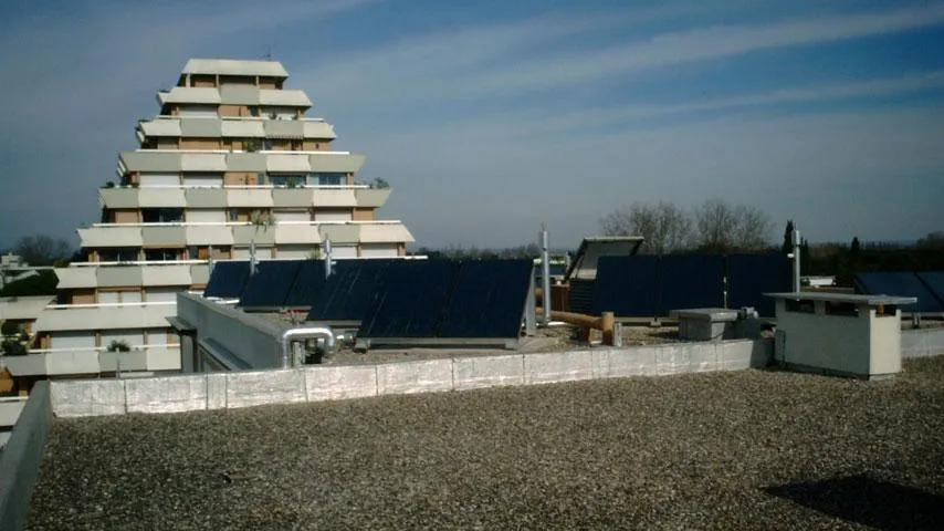 Qui ne connaît pas la Grande-Motte ? Cette célèbre station balnéaire de l’Hérault, située à proximité de Montpellier, doit notamment sa notoriété à l’architecture pyramidale de la plupart de ses immeubles d’habitation. Précisément, dans l’un d’entre eux, construit en 1976 et baptisé « Les Incas », la copropriété a fait le choix, voici déjà seize ans, d’associer au gaz un équipement solaire thermique pour produire l’eau chaude sanitaire de ses 241 logements. « Les bâtiments pyramidaux ne sont généralement pas adaptés à ce genre de solution parce que leurs toits-terrasses laissent peu de places disponibles mais celui-ci fait exception », note Bernard Glomon, ingénieur et responsable de l’agence PACA du bureau d’études Tecsol, spécialisé dans l’énergie solaire thermique et photovoltaïque. C’est ce bureau d’études qui réalisa dès 2002 l’étude de faisabilité avant que les travaux ne démarrent pour une mise en service en février 2004.