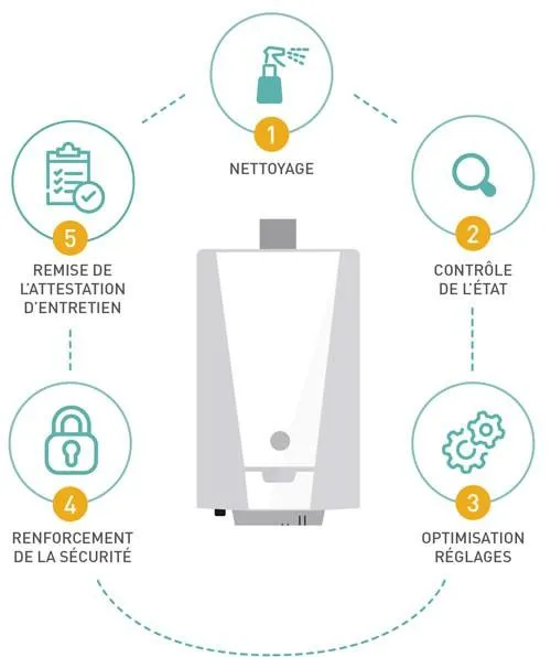 L’entretien de la chaudière gaz se fait en 5 étapes :